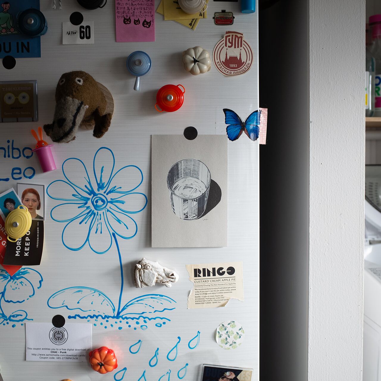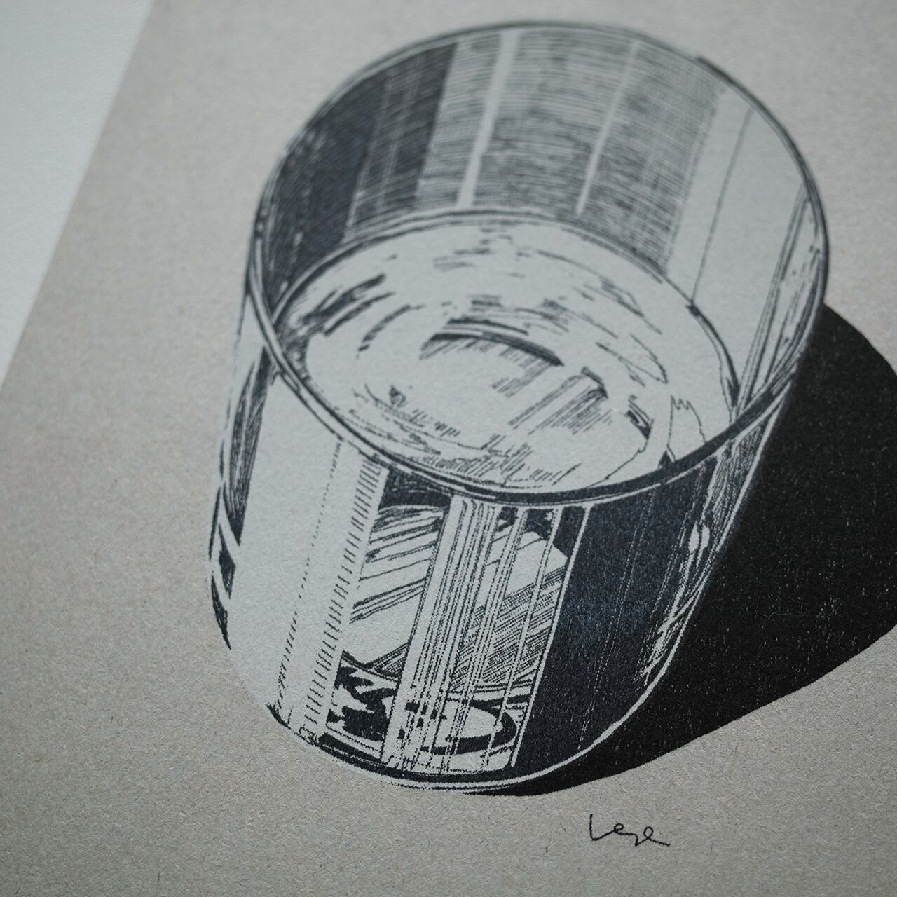 健康のためにこまめに水を飲むようにしているのですが、このボデガグラスで飲む水がとても美味しくてガブガブ水分補給できちゃいます。そんなグラスをポストカードに落とし込みました。